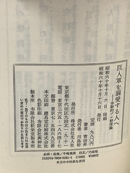 タイトル:巨人軍を溺愛する人へ: 体験的プロ野球論 光人社 青田 昇