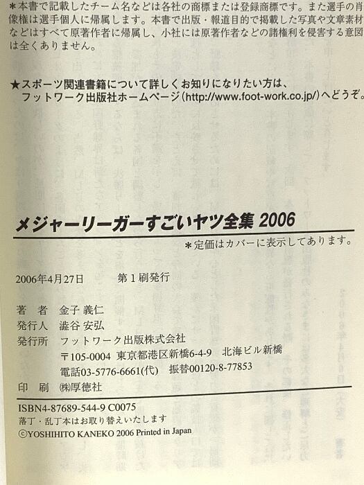 タイトル:メジャーリーガーすごいヤツ全集 2006 フットワーク出版 金子 義仁