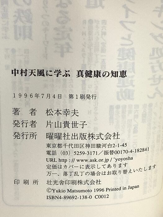 タイトル:中村天風に学ぶ真健康の知恵 駿台曜曜社 松本 幸夫