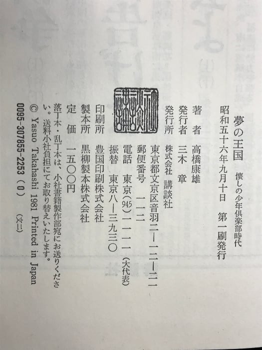 タイトル:夢の王国 -懐かしの少年倶楽部時代- 講談社 著:高橋康雄 昭和56年