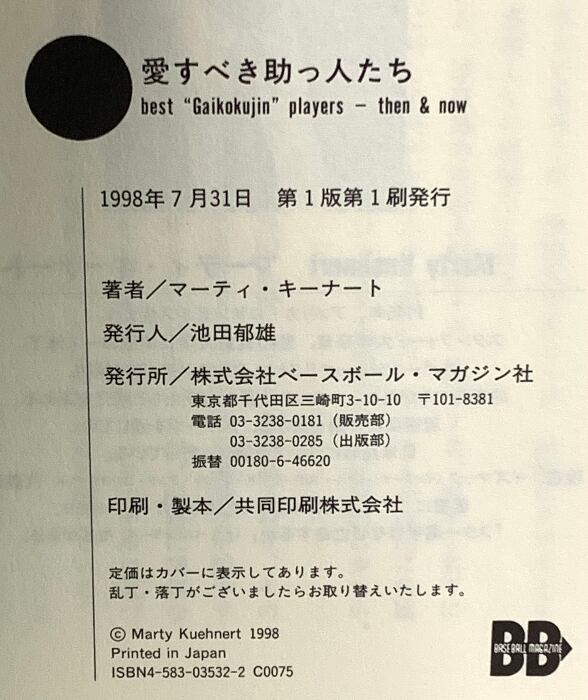 タイトル:愛すべき助っ人たち best Gaikokujin players-then&now ベースボール・マガジン社 マーティ キーナート