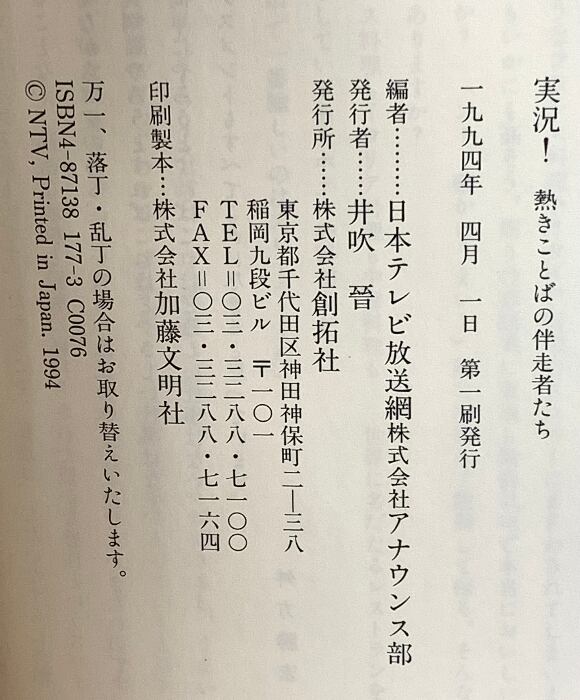 タイトル:実況! 熱きことばの伴走者たち 創拓社 日本テレビアナウンス部