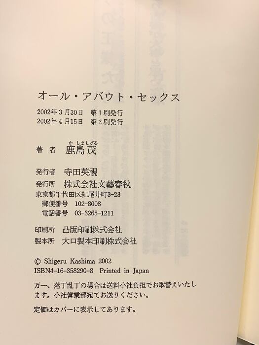 オール・アバウト・セックス 文藝春秋 鹿島 茂