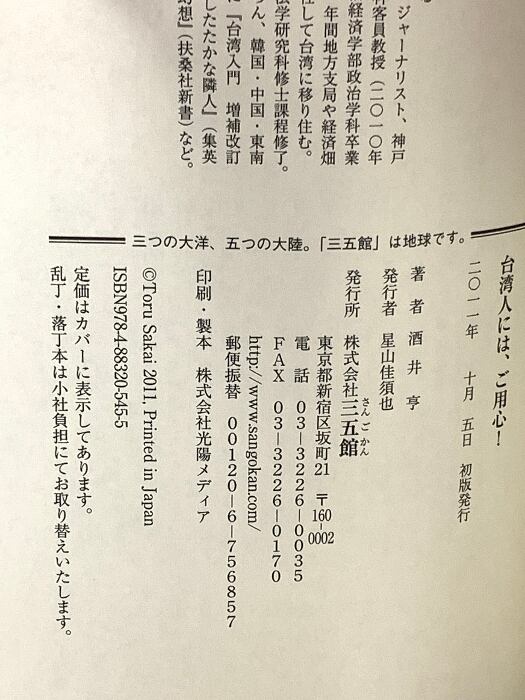 タイトル:台湾人には、ご用心! 愛しているから全部、書く 三五館 酒井 亨