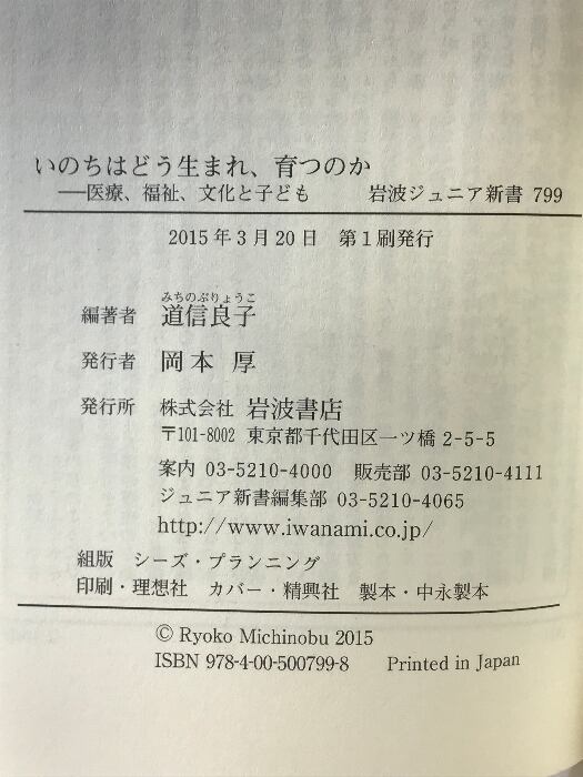 タイトル:いのちはどう生まれ、育つのか――医療、福祉、文化と子ども (岩波ジュニア新書) 岩波書店 道信 良子