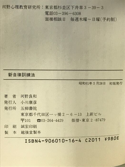 タイトル:新自律訓練法: 不快感を追い出す (心の健康シリーズ 2) 五柳書院 河野 良和