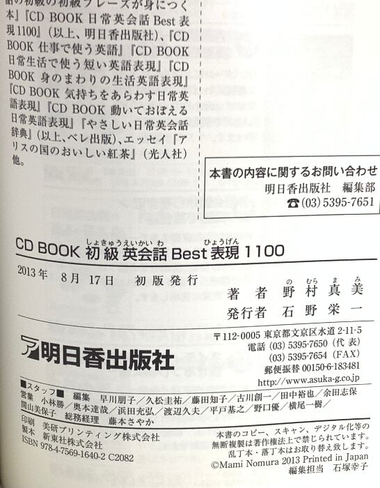 CD BOOK 初級英会話Best表現1100 明日香出版社 野村 真美
