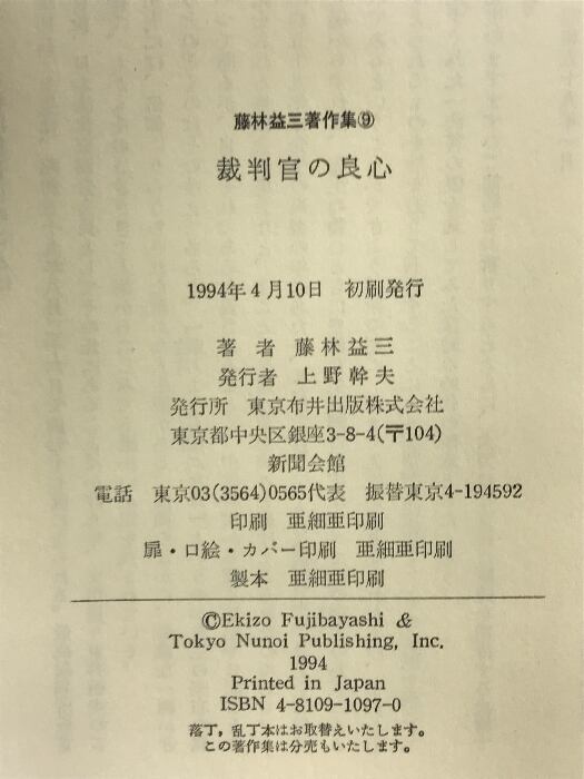 タイトル:藤林益三著作集 9 裁判官の良心 青月社 藤林益三