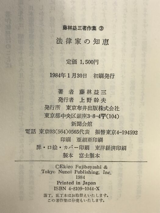 藤林益三著作集 3 法律家の知恵 東京布井出版