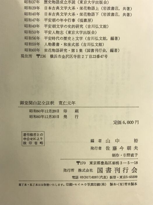 タイトル:御堂関白記全註釈(寛仁元年) 国書刊行会 山中裕編 昭和60年