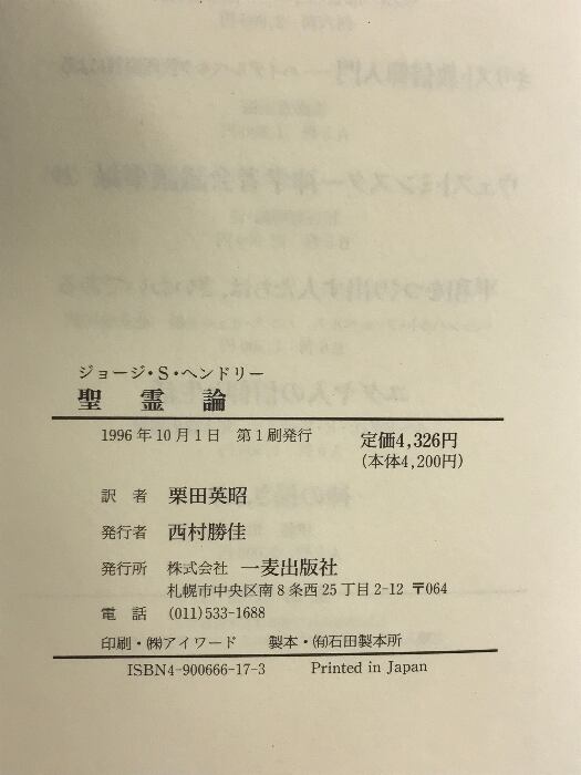 聖霊論 一麦出版社 ジョ-ジ ステュア-ト ヘンドリ-