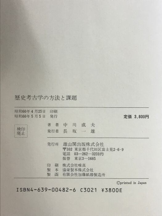 歴史考古学の方法と課題 雄山閣 中川 成夫