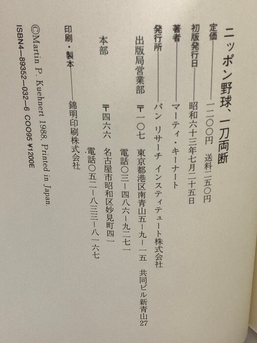 タイトル:ニッポン野球、一刀両断 外人選手170人の証言 石田パンリサーチ出版局 マーティ キーナート