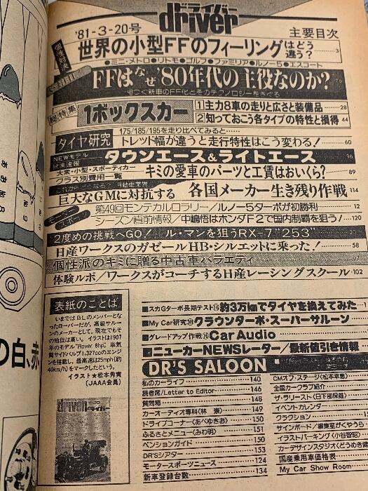 3 ドライバー driver 1981 3月号 総特集 1ボックスカー 大衆・小型・スポーティカーのパーツと工賃 RX-7 タウンエース