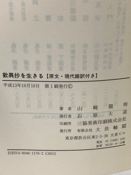 タイトル:歎異抄を生きる 原文・現代語訳付き 大法輪閣 山崎 龍明