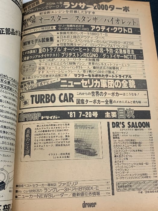 ドライバー driver 1981 7月号 独占至急報 オースター スタンサ バイオレット 特集 TUBRO CAR セリカ シルビア アウディ