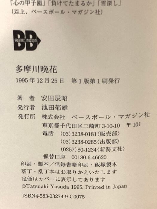 タイトル:多摩川晩花 日本ハムファイターズ渡辺浩司 苦節13年の軌跡 ベースボール・マガジン社 安田 辰昭