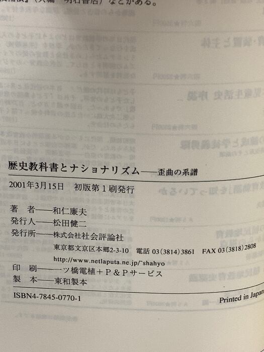 歴史教科書とナショナリズム 歪曲の系譜 社会評論社 和仁 廉夫