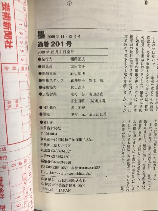 (3)墨 201号 2009年 11・12月号 条幅の達人になる 漢字条幅の鉄則 2010寅都市の年賀状 芸術新聞社 2009年