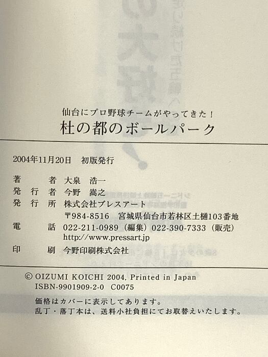 タイトル:杜の都のボールパーク 仙台にプロ野球チームがやってきた! (株)プレスアート 大泉浩一