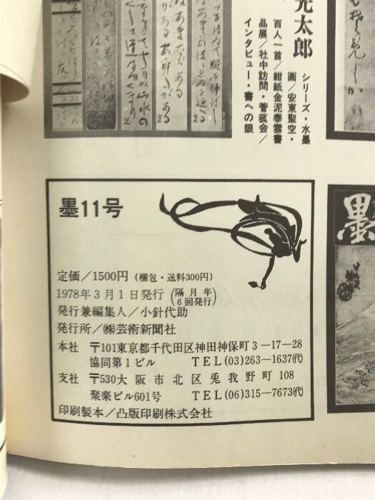 (12)墨 3月号 NO.11 1978年 隔月刊 特集:正岡子規・飯島春敬・香川春蘭 現代書道20人展 芸術新聞社 1978年