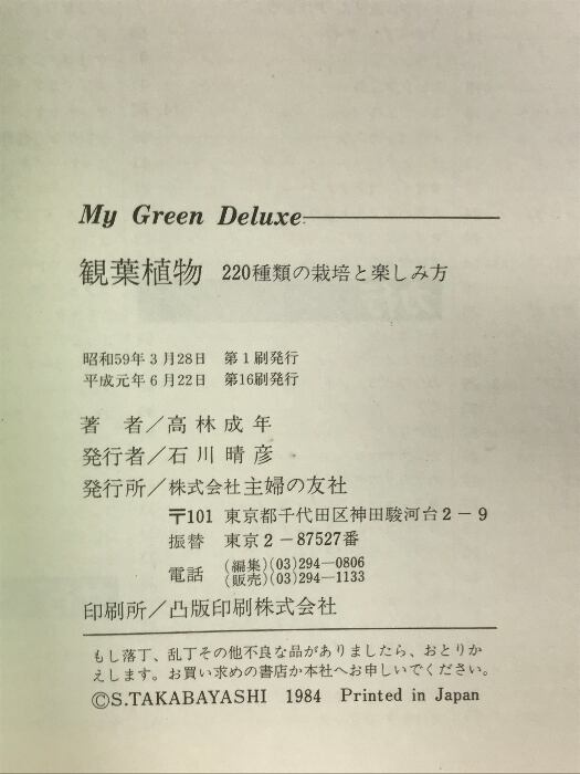 観葉植物―220種類の栽培と楽しみ方 (My green deluxe) 主婦の友社 高林成年