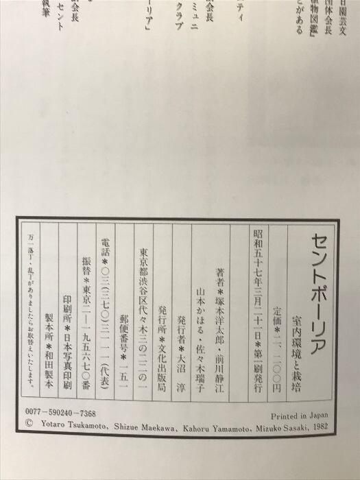タイトル:セントポーリア―室内環境と栽培 文化出版社 塚本洋太郎・前川静江 他