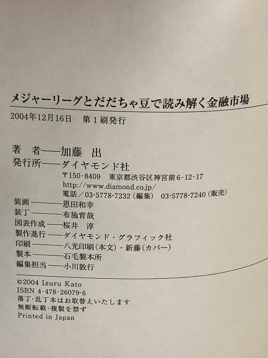 タイトル:メジャーリーグとだだちゃ豆で読み解く金融市場 ダイヤモンド社 加藤 出