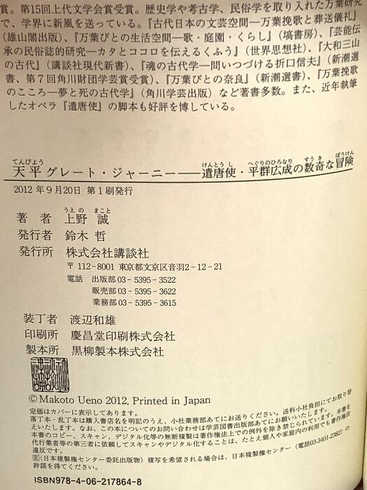 タイトル:天平グレート・ジャーニー: 遣唐使・平群広成の数奇な冒険 講談社 上野 誠