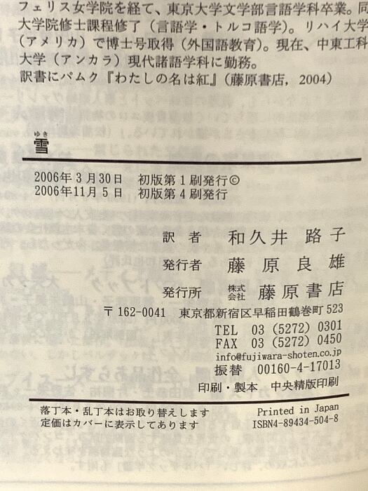 タイトル:雪 藤原書店 オルハン・パムク