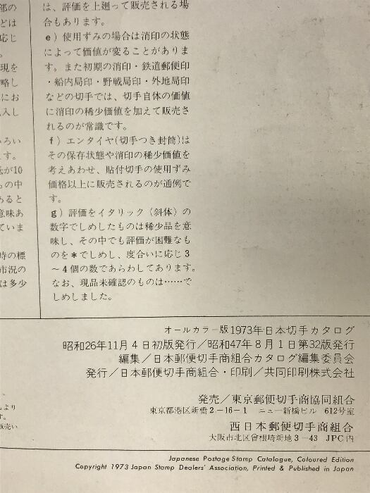 オールカラー版 日本切手カタログ1973 日本郵便切手商組合編 昭和48年