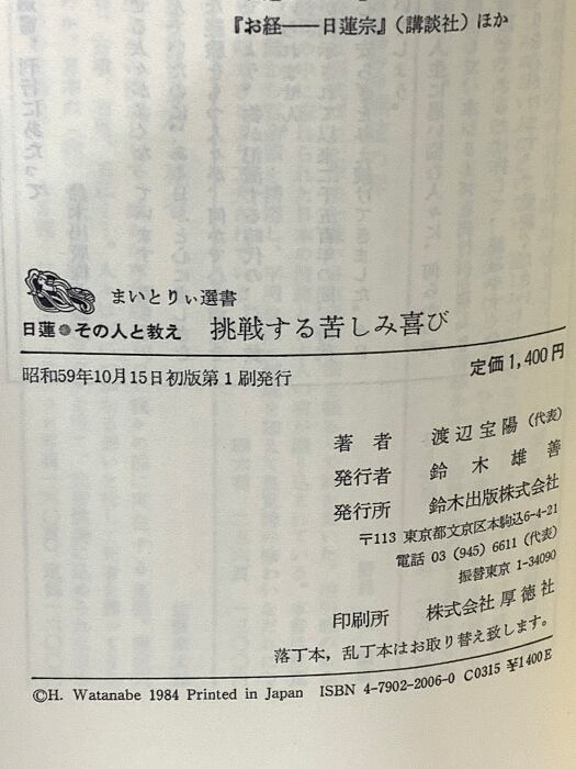 挑戦する苦しみ喜び: 日蓮・その人と教え (まいとりぃ選書) 鈴木出版 渡辺 宝陽
