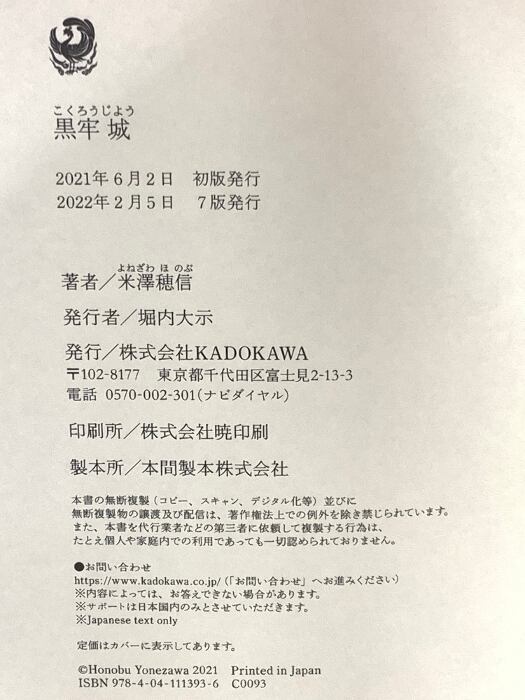 タイトル:黒牢城 KADOKAWA 米澤 穂信