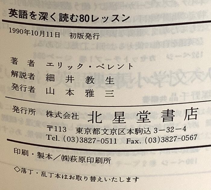 英語を深く読む80レッスン 北星堂書店 エリック ベレント