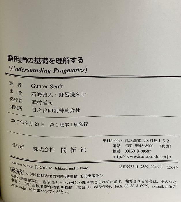タイトル:語用論の基礎を理解する (株)開拓社 Gunter Senft