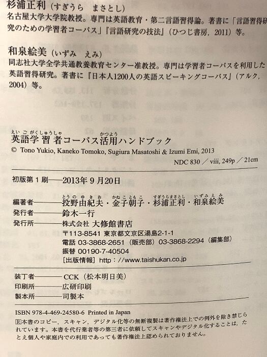 タイトル:英語学習者コーパス活用ハンドブック 大修館書店 投野由紀夫