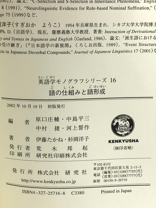 タイトル:語の仕組みと語形成 (英語学モノグラフシリーズ 16) 研究社 伊藤 たかね