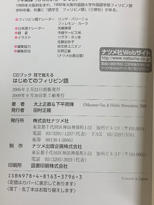 タイトル:はじめてのフィリピン語 耳で覚える ナツメ社 大上 正直