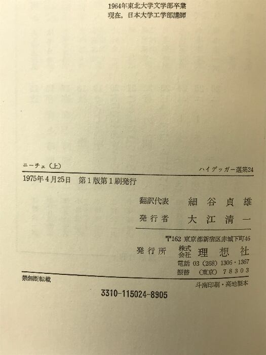 タイトル:ハイデッガー選集〈24〉ニーチェ (上) ― 美と永遠回帰 理想社 マルティン・ハイデッガー