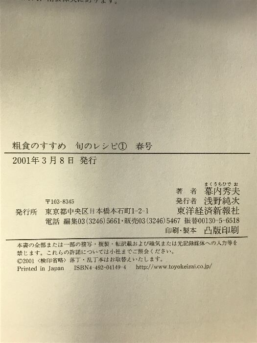 粗食のすすめ 旬のレシピ〈1〉春号 東洋経済新報社 幕内 秀夫