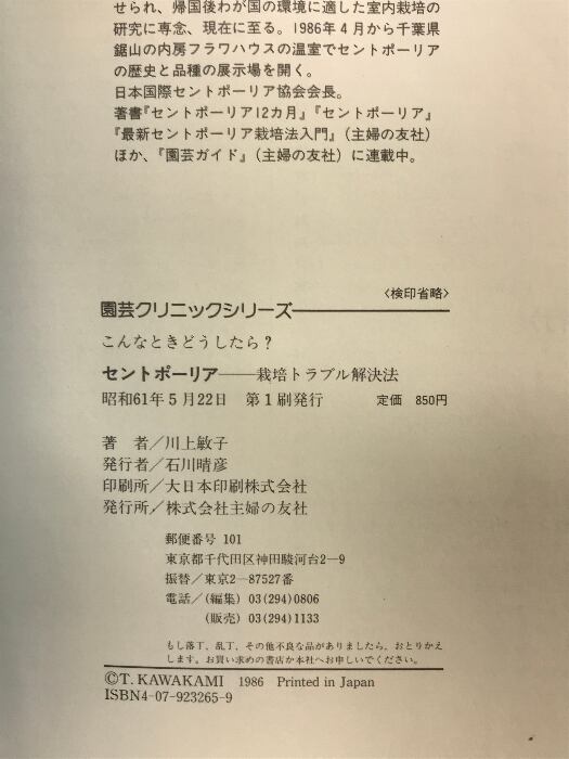 タイトル:こんなときどうしたら?セントポーリア 主婦の友社 川上 敏子