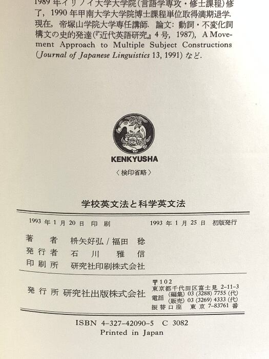 タイトル:学校英文法と科学英文法 研究社 枡矢 好弘