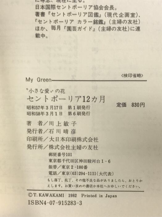 タイトル:セントポーリア12カ月: 小さな愛の花 必ず花が咲く育て方 (My Green) 主婦の友社 川上 敏子