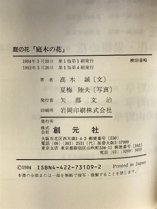 タイトル:庭木の花 創元社 高木 誠