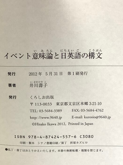 タイトル:イベント意味論と日英語の構文 くろしお出版 井川壽子