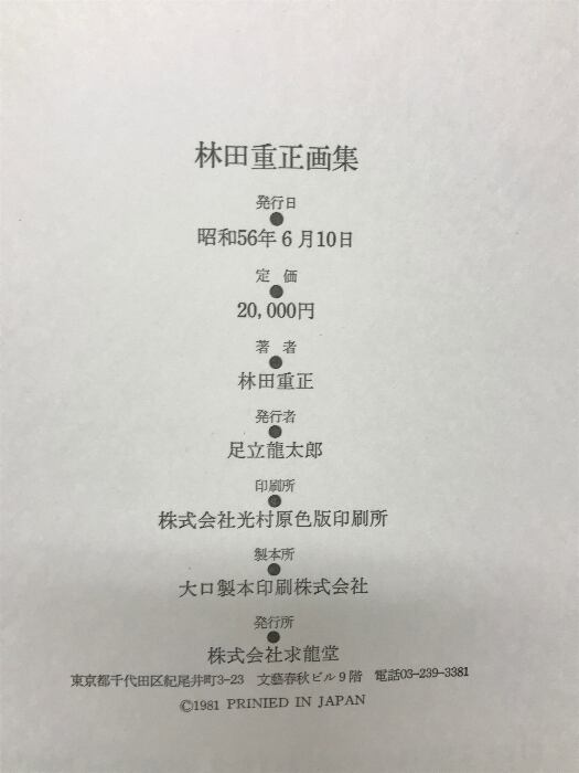 タイトル:【図録】林田重正画集 発行:求龍堂 著:林田重正 昭和56年