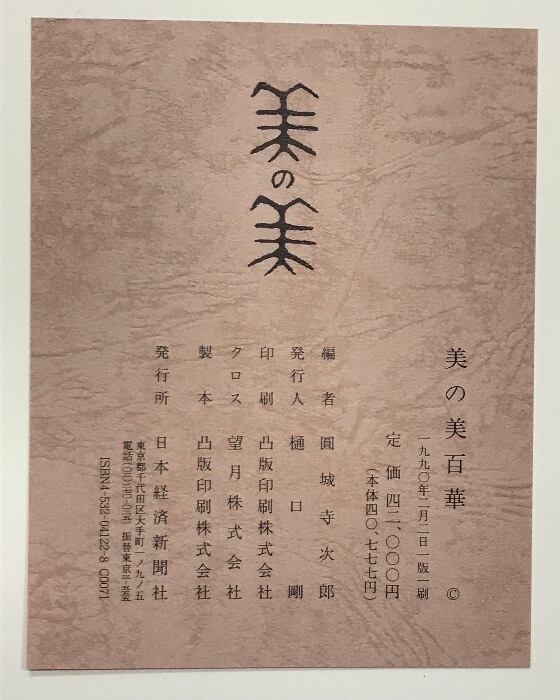 タイトル:【図録】美の美百華 発行:日本経済新聞社 編:圓城寺次郎 1990年