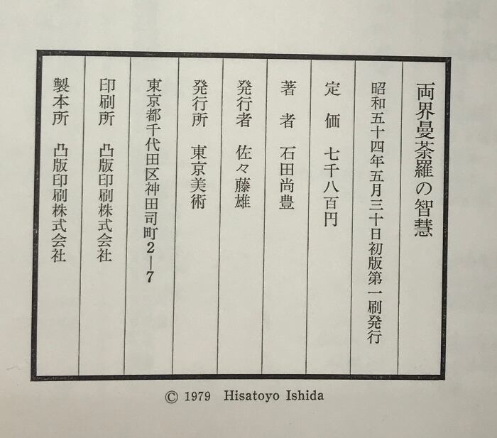 タイトル:両界曼荼羅の智慧 発行:東京美術 著:石田尚豊 昭和54年