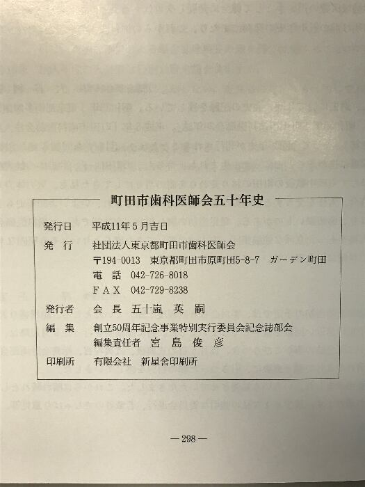 町田市歯科医師会 50年史 発行:社団法人東京都町田市歯科医師会 平成11年