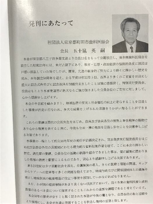 タイトル:町田市歯科医師会 50年史 発行:社団法人東京都町田市歯科医師会 平成11年